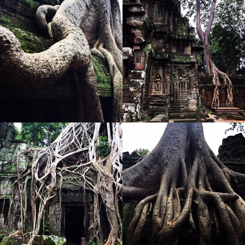 y Ta Prohm envuelto por la jungla, en un abrazo apretado de raíces de árboles ancentrales. Fue en este templo que se grabó Tom Raider.