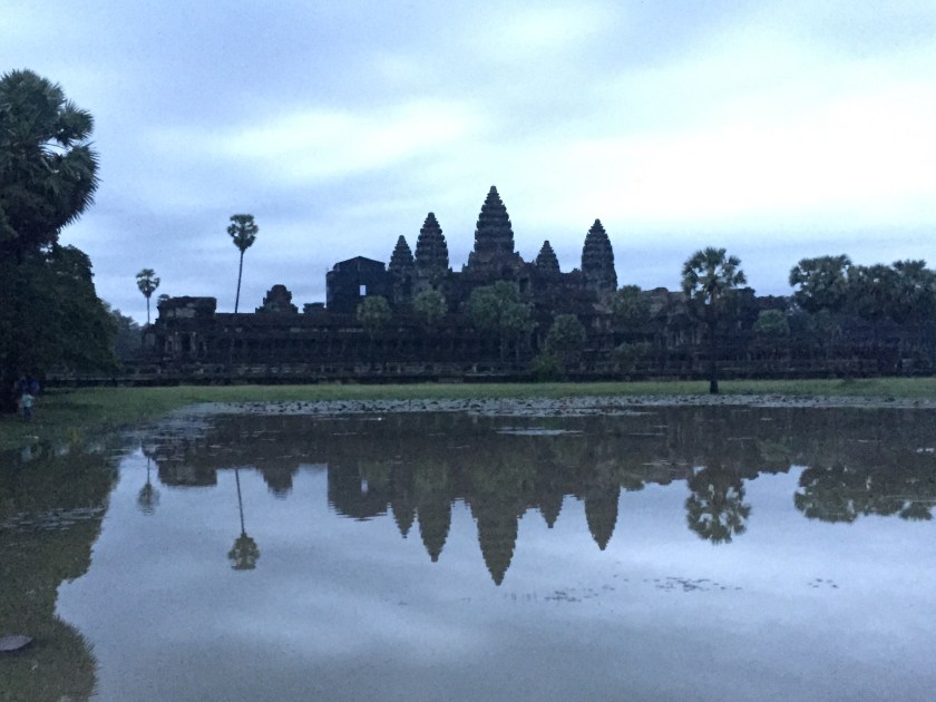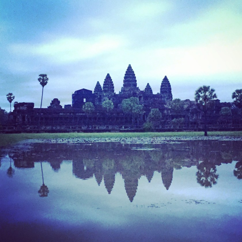 Angkor Wat es el edificio religioso más grande del mundo y fue mandado construir en el siglo XII por Suryavarman II en honor al dios hinduísta Visnú (a la par que la gótica Notre Dame). Es imprescindible madrugar y verlo al amanecer. El efecto doble en los estanques y el progresivo fluir de matices del cielo y de sus contornos es mágico.