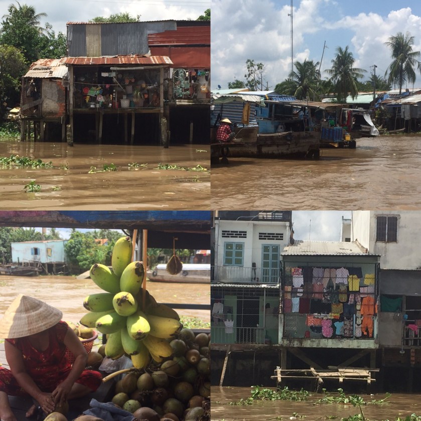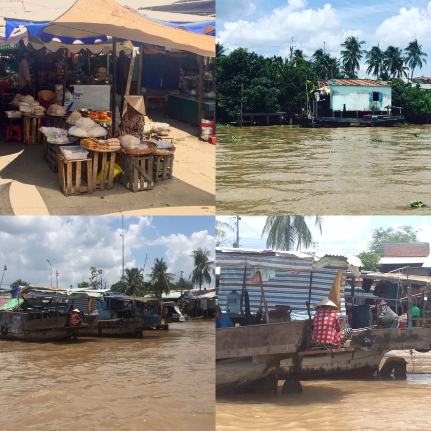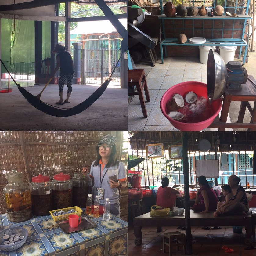 Otra excursión a no perder es al Delta del Mekong (esta la hemos contratado en el hotel). Es muy interesante ver el lifestyle flotante, la vida hecha sobre agua de los habitantes de esta zona. En el trayecto en autobús de camino al delta se recogen campos de arrozales y otras plantaciones. Llama la atención la cantidad de lápidas que ves: en el delta hay la costumbres de enterrar a los suyos dentro de la propia propiedad. Una vez llegados a Cai Bè se visita el labiríntico mercado flotante y luego se coge un barco que te acerca a una zona de canales. Ahí nos ha recogido una señora en su canoa y nos adentró por los canales en la isla donde pudimos experiencia este aislado modo de vida anfíbio. Cerca de 100 millones de personas habitan en las orillas del Mekong. Hemos «acariciado» sus mascotas (pitones), asistido a la producción artesanal de licor (a base de sus mascotas) y de dulces de coco, hemos dado una vuelta en bicicleta por el poblado, visto una demostración de un cantar típico que es patrimonio inmaterial de la Humanidad, cocinado con los locales y probado un curioso pescado de río que es plato típico de la zona. Un día muy bien pasado.