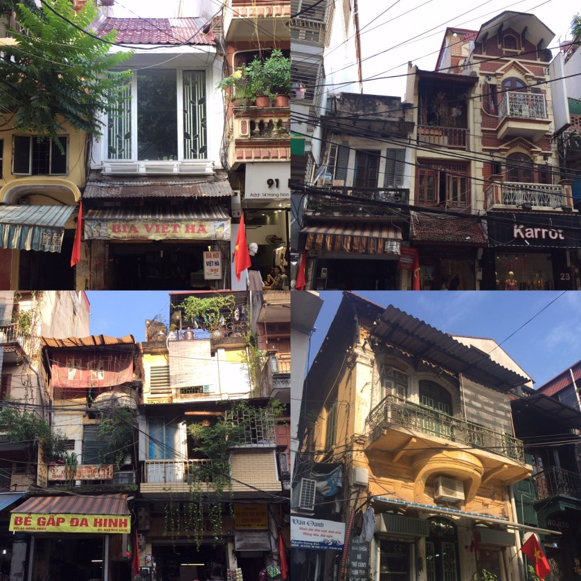 Paseando se recoge el laberíntico Old Quarter (barrio antiguo), epicentro del comercio, caos de cables, colores, olores, mansiones coloniales que con la expulsión de los franceses se han repartido entre los «camaradas» (es muy curioso ver la profundidad de los edificios, los pasillos eternos que te llevan hasta las habitaciones más alejadas de la fachada, las mejores y más caras por supuesto). En el siglo XIII se han establecido gremios de oficios o mercancía (herreros, hojalateros, herboristas, etc) que se agrupaban en las 36 calles gremiales (36 Pho Phuong), aunque hoy en día ya no son necesariamente ocupadas solo por negocios que venden dicho producto.