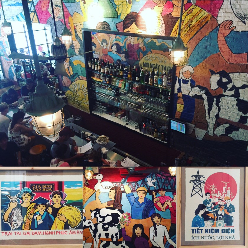 Propaganda Bistrot, repleto de murales y pósters socialistas retro, es ideal para compaginar con la visita al palacio de la Reunificación.
