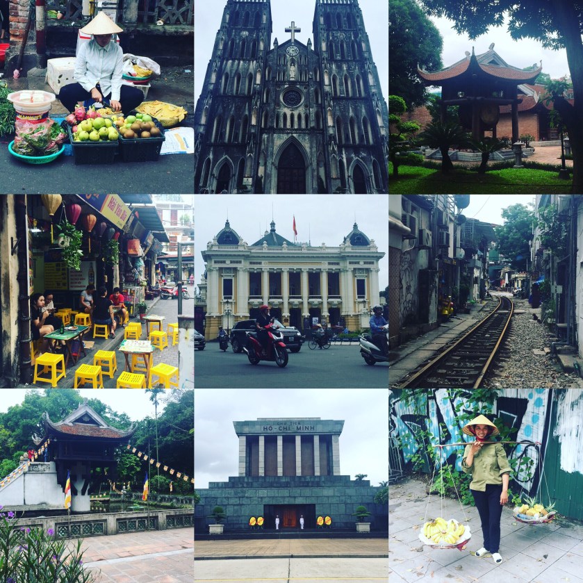 Se visita la catedral neogótica de San José (construida en 1886, y muy similar a Notre Dame), el Teatro de la Ópera (construido en 1911, y desde cuyo balcón en 1945 el Comité del Pueblo del Viet Minh anunció que había tomado el control de la ciudad), el lago Hoan Kiem (y su fascinante leyenda de su tortuga) donde uno puedo ver a las 6 de la mañana los vecinos practicando tai chi, el Dong Xuan Market (el mercado cubierto más grande de la ciudad construido en el siglo XIX por los franceses), el Templo de la Literatura (la primera universidad del país, fundada en 1070 y consagrada a confiucio), el Mausoleo de Ho Chi Minh (lugar de peregrinación de muchos vietnamitas donde está el cuerpo embalsado del «tío Ho», que había pedido expresamente para ser quemado y nadie le hizo caso. Caso se quiera entrar hay que ir temprano, hay colas y solo abre de 8h a 11h de la mañana), Por el camino hay que parar en el singular Café Giang para tomar un egg coffee. Tanto el frío como el caliente, ambos son deliciosos. La receta es secreto de la familia, y fue inventada en 1946 (por necesidad, ya que escaseaba la leche) por el fundador cuando trabajaba como bartender en el hotel Legend Metropole.